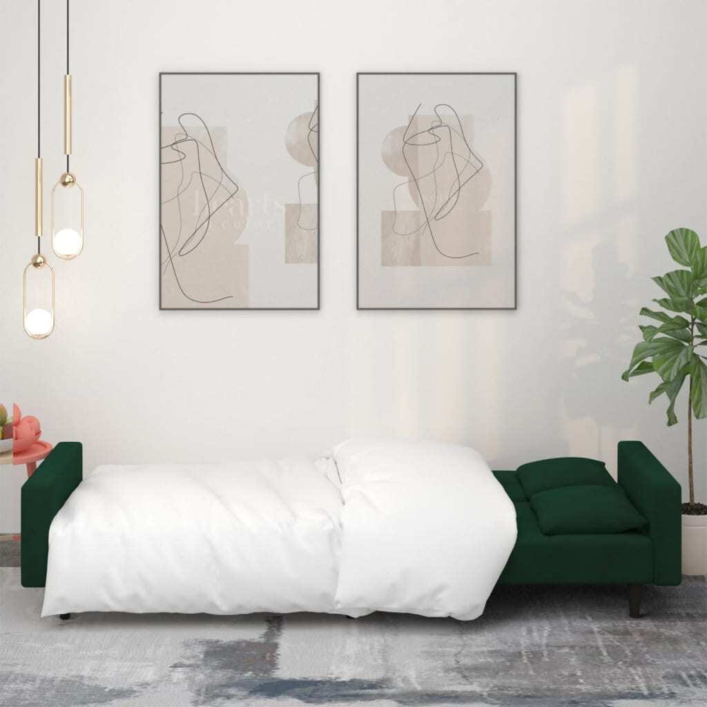 This 2-Seater Sofa Bed is dressed in a gorgeous dark green velvet that gives a bright pop of color, perfect for lifting any living space or bedroom. Its sleek, modern design makes it super versatile for hosting guests or just chilling out, while also blending in beautifully with contemporary decor.