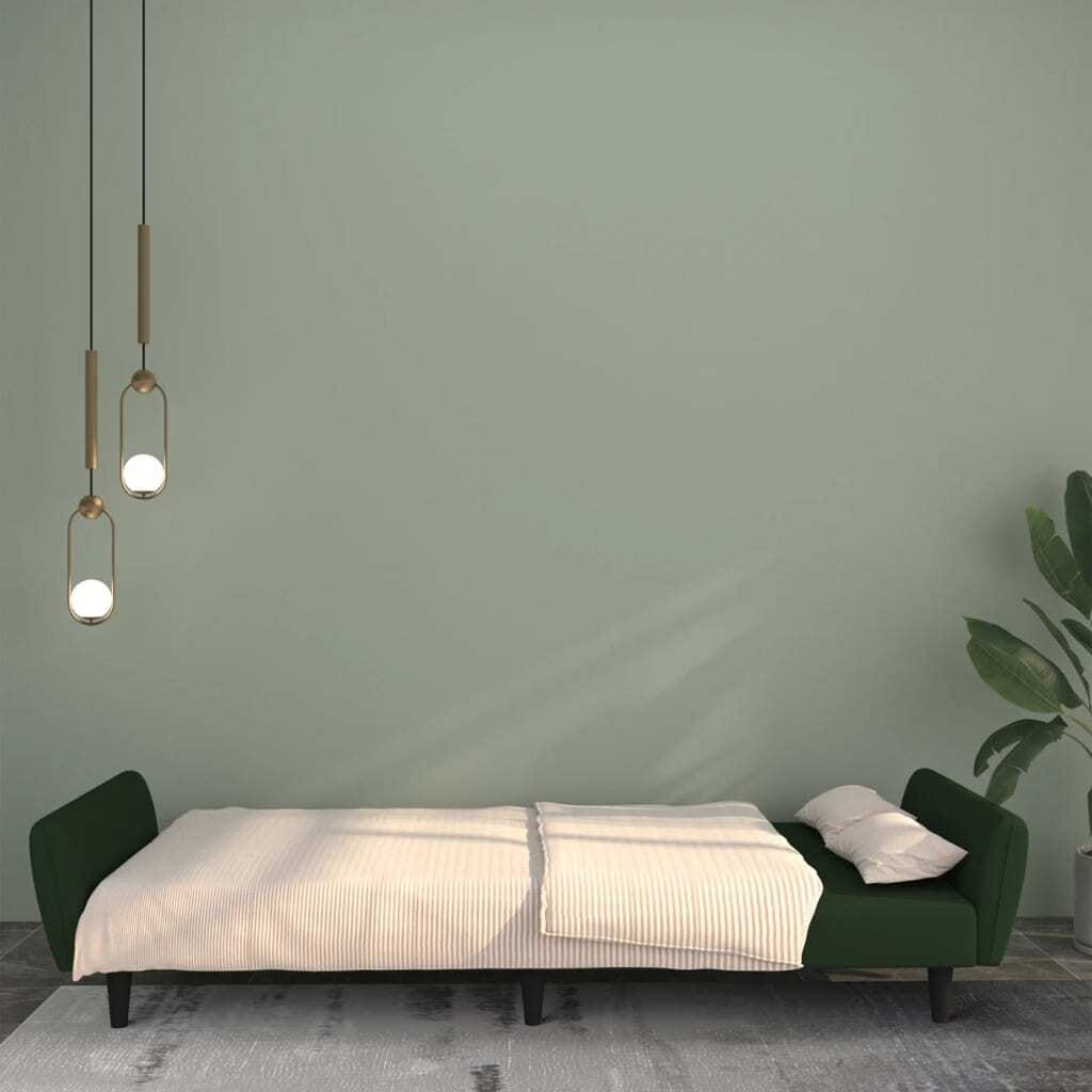 Check out this convertible sofa bed that blends style with function. It adds a splash of luxury to any space with its striking dark green velvet. Perfect for anyone who wants comfort and flexibility, it works as a sofa by day and turns into a bed at night, making it ideal for hosting friends or enjoying a chill evening at home.