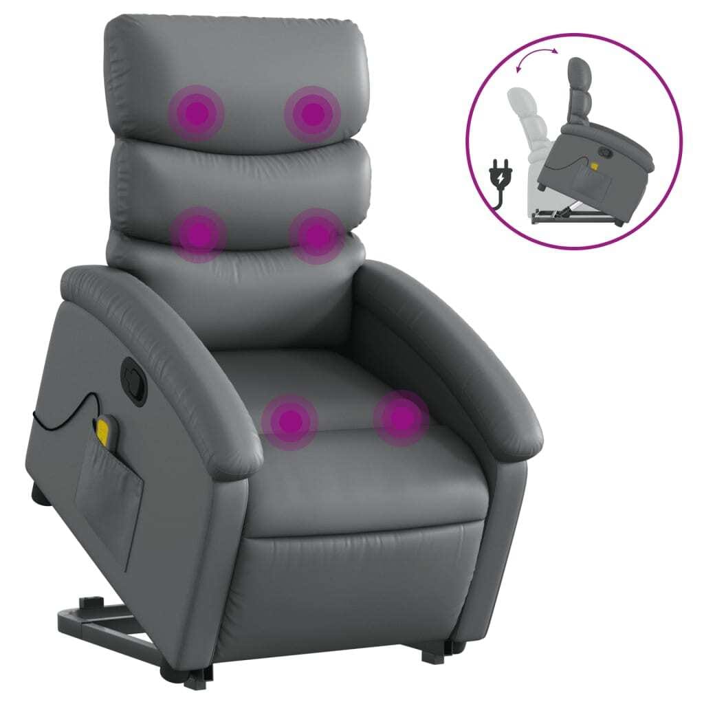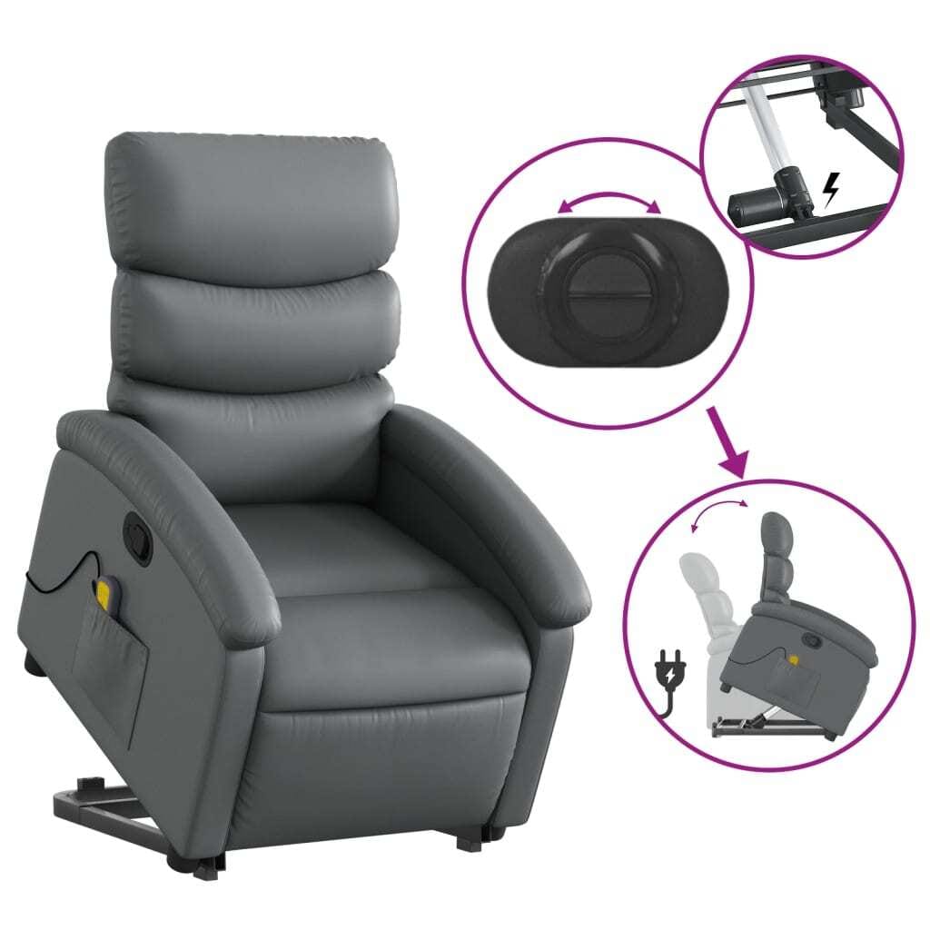 This Stand Up Massage Recliner Chair perfectly blends functionality and comfort into a chic design, ideal for those seeking both relaxation and support. With its sophisticated grey faux leather upholstery, this chair not only complements modern decor but also enhances any living space, offering a snug retreat for reading, watching TV, or unwinding after a long day.