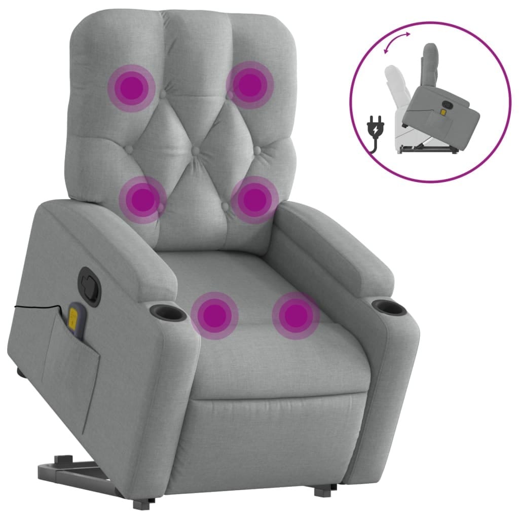 Stand up Massage Recliner Chair Light Gray Fabric