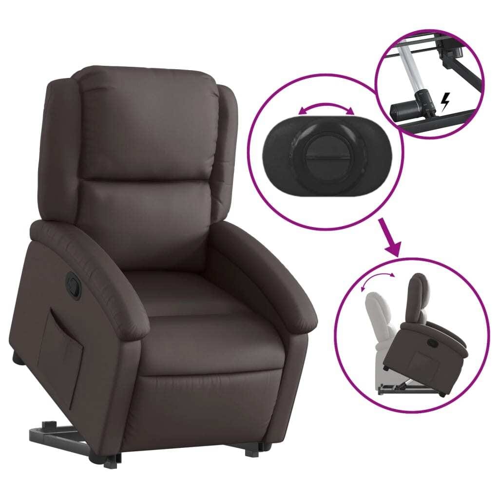 Stand up Recliner Chair Dark Brown Real Leather
