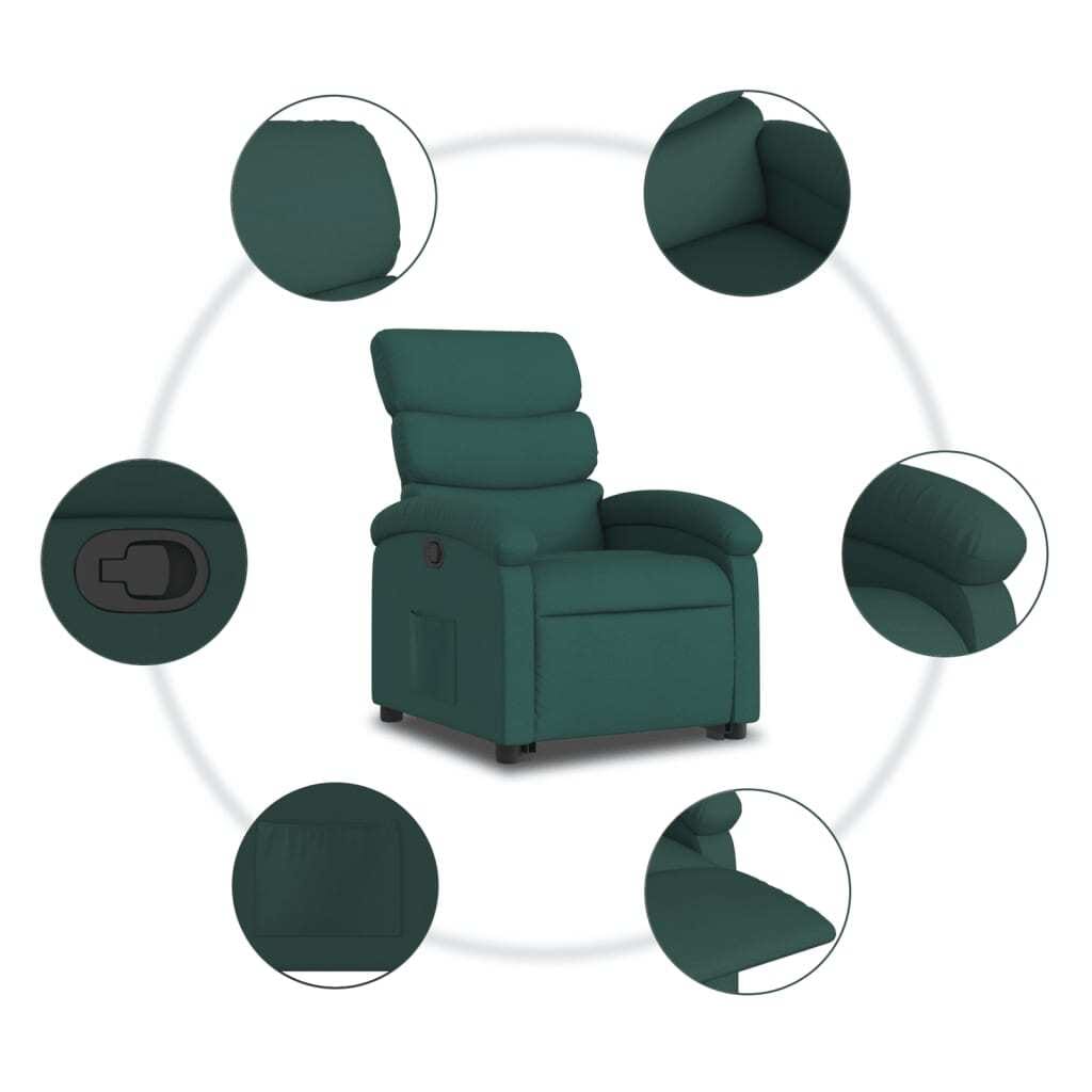 This stand-up recliner chair offers a luxurious seating experience with its sleek dark green fabric that fits right in with any living space. Perfect for anyone, this chair not only provides comfort but also assists folks who might need a helping hand getting up, making it ideal for watching TV or just kicking back after a long day.