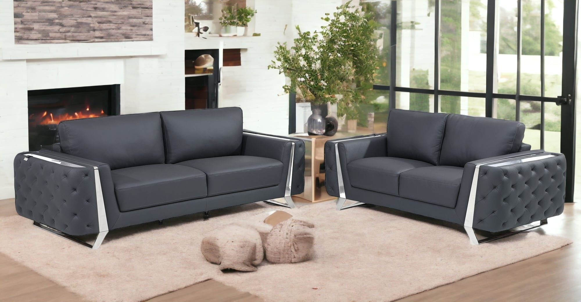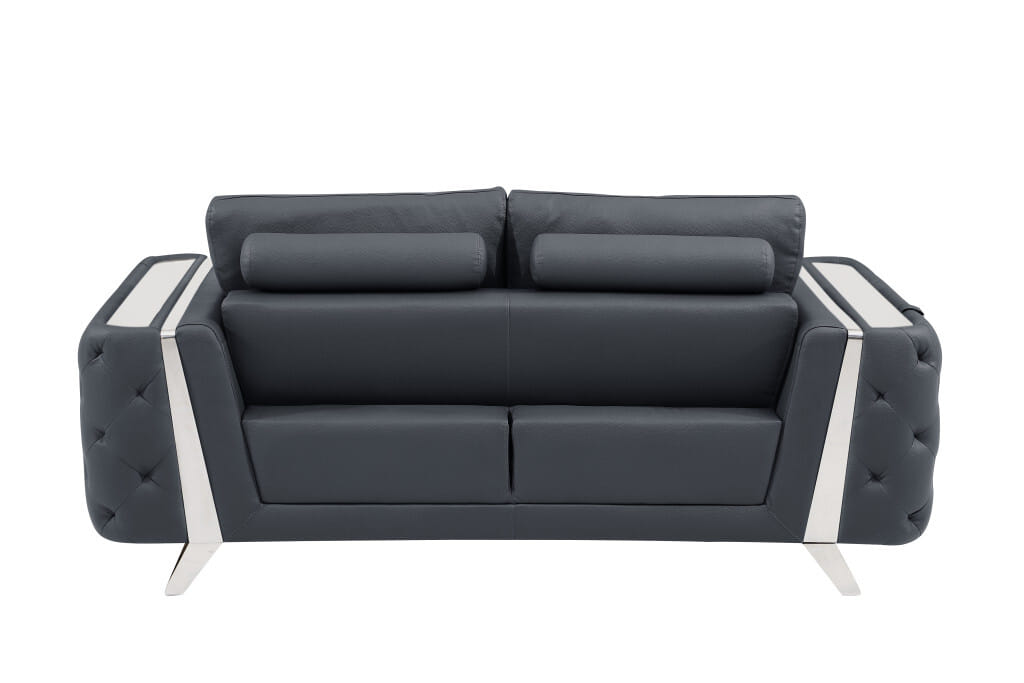 Step into a world of unparalleled seating comfort that is sure to dazzle even the toughest critic with our remarkable two piece indoor dark gray italian leather five person seating set. Upholstered in supple and luxurious genuine leather, this set has a rich and warm appeal. Coil spring seat construction provides excellent comfort by offering a responsive and supportive seating experience, gently contouring to the body’s natural curves. The inclusion of a loveseat into your mix allows a fashionable seating option in a compact design. Chock full of value, this set has it all. 33.5-inch H x 90-inch W x 39-inch D
